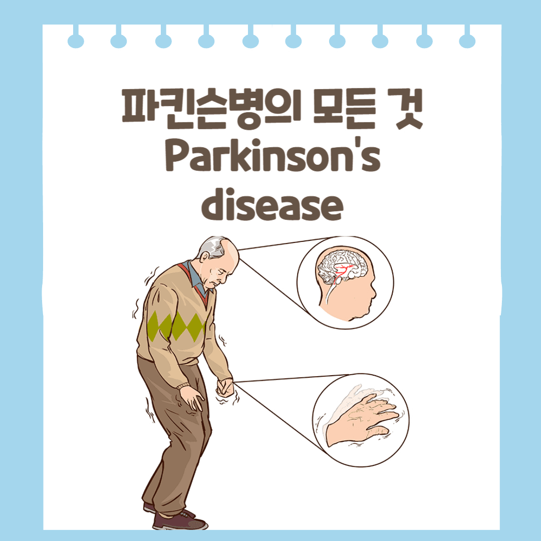 파킨슨병 (Parkinson’s disease, PD) 은 퇴행성 질환으로, 질병의 진행 기간이 수십 년에 걸쳐 점진적으로 진행되며, 증상과 진행 패턴이 환자마다 다양하다. 원인, 증상, 진단, 치료, 약물, 예후에 대하여 알아보자.